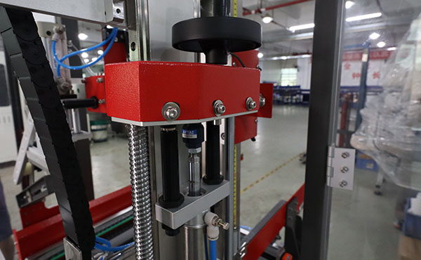 將主機(jī)移動至預(yù)定工位,使用水平尺調(diào)節(jié)機(jī)架底部的可調(diào)腳杯,確保設(shè)備縱向與橫向處于水平狀態(tài),這是保障紙箱平穩(wěn)通過的基礎(chǔ)。根據(jù)待封箱紙箱的常規(guī)尺寸,初步調(diào)整兩側(cè)機(jī)架及上機(jī)頭的寬度和高度,使輸送通道與產(chǎn)品尺寸大致匹配。